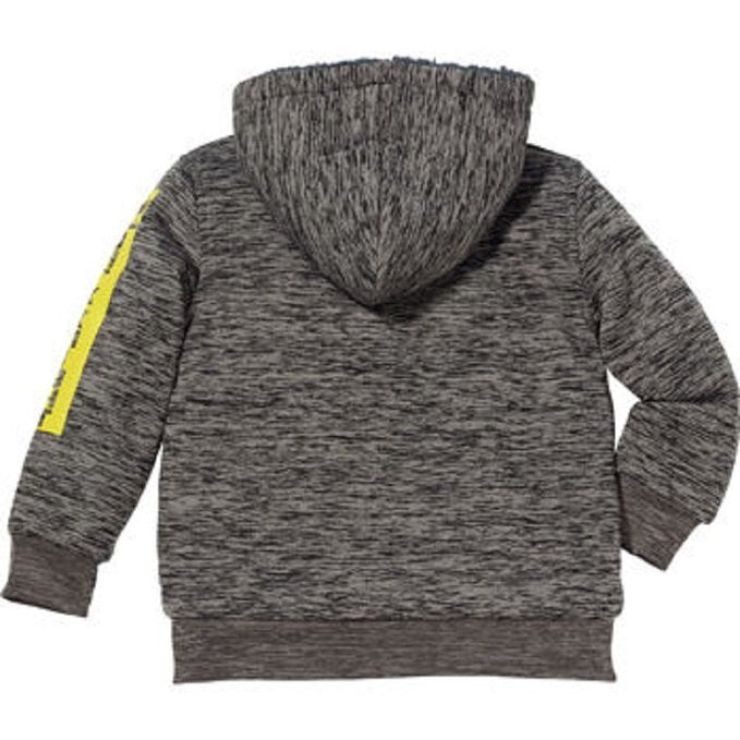 He'll be mighty throughout the day in this superhero sherpa lined hoodie featuring a full front zip, two front pockets, print on sleeve, and superhero applique on front. YKK zipper. Machine washable