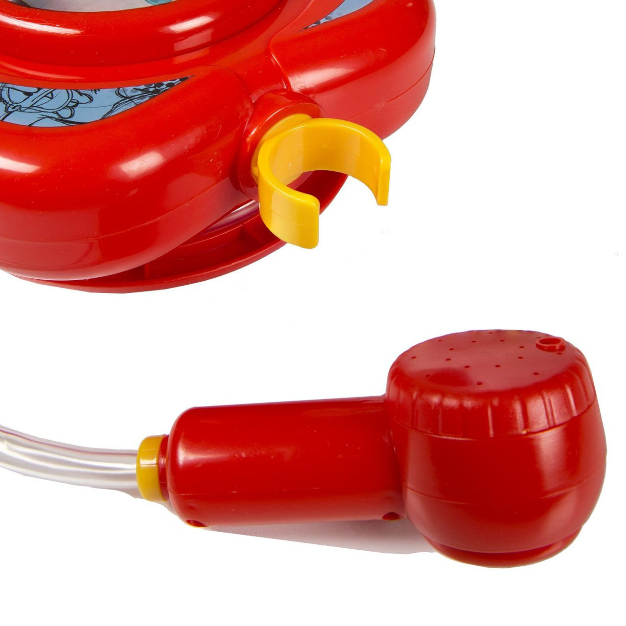 Push-button shower spray fun in the tub. Easy-off button andhose allows children to practice and get the sensation of showering while sitting in the tub.